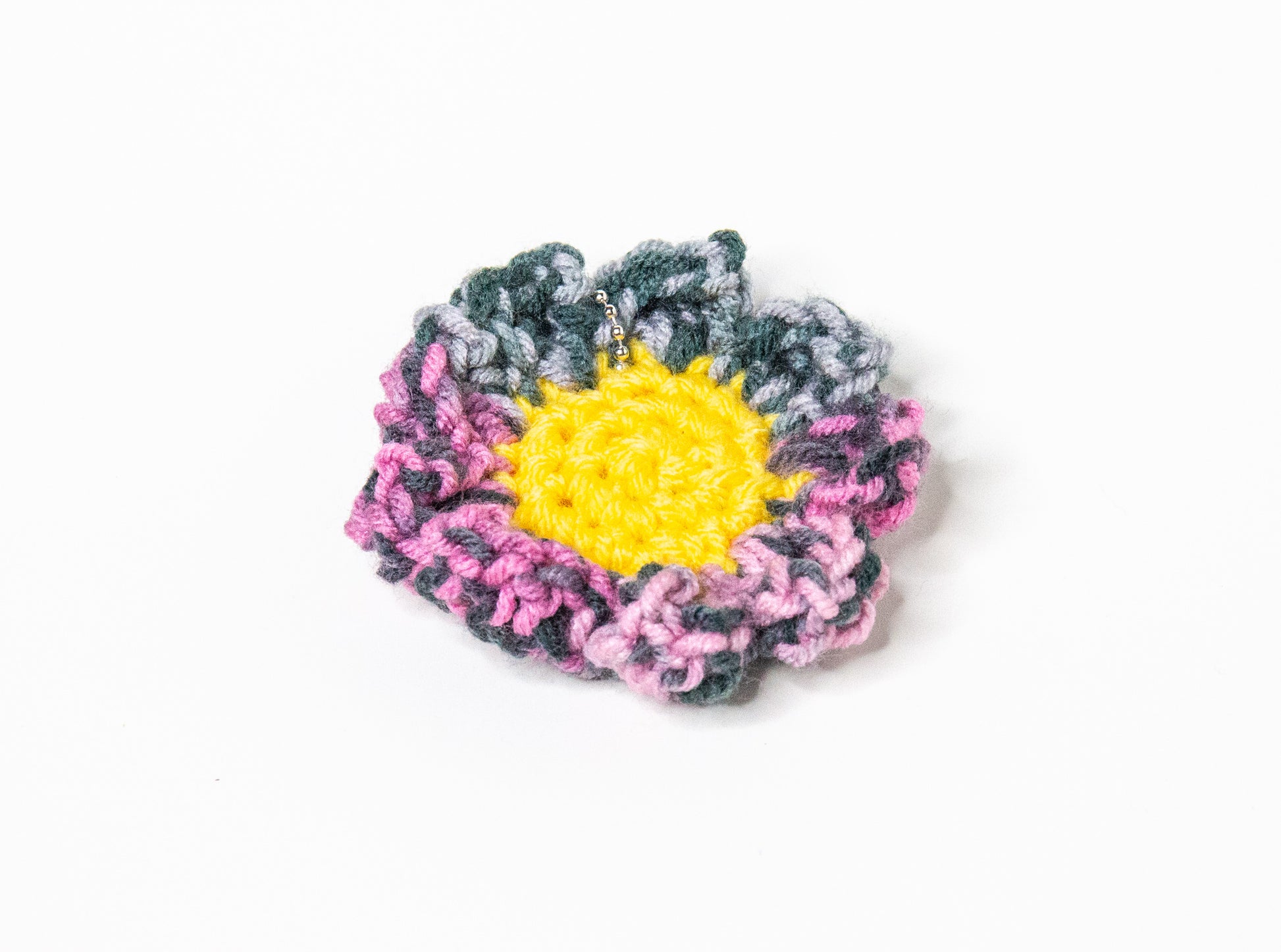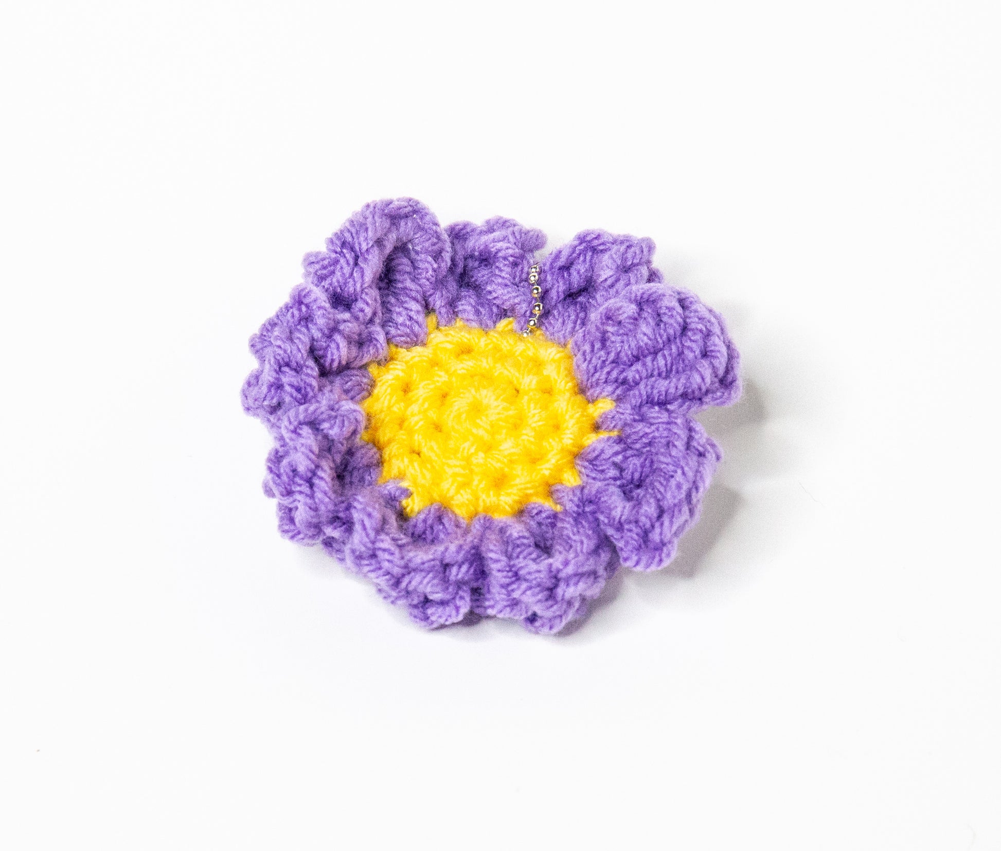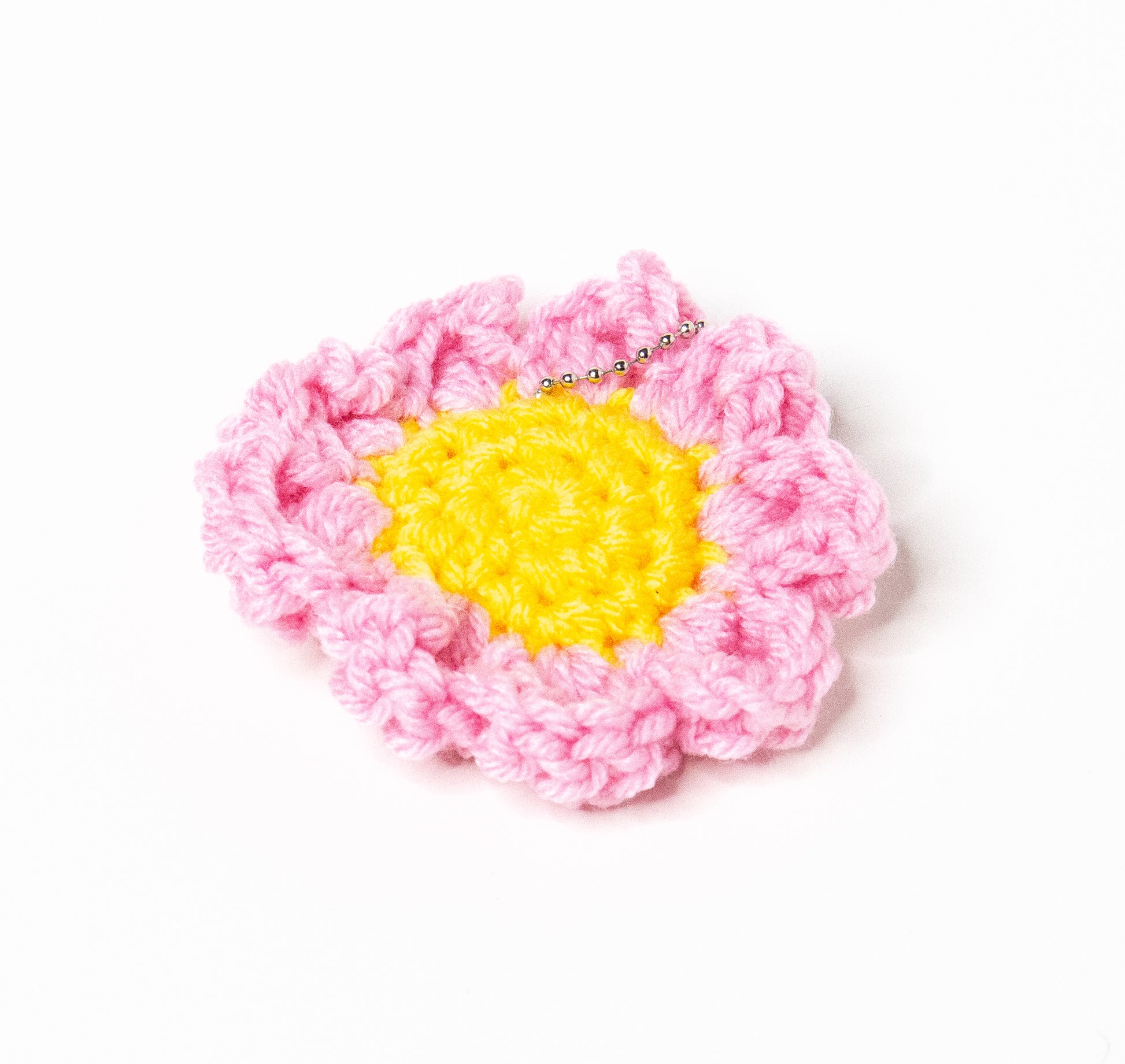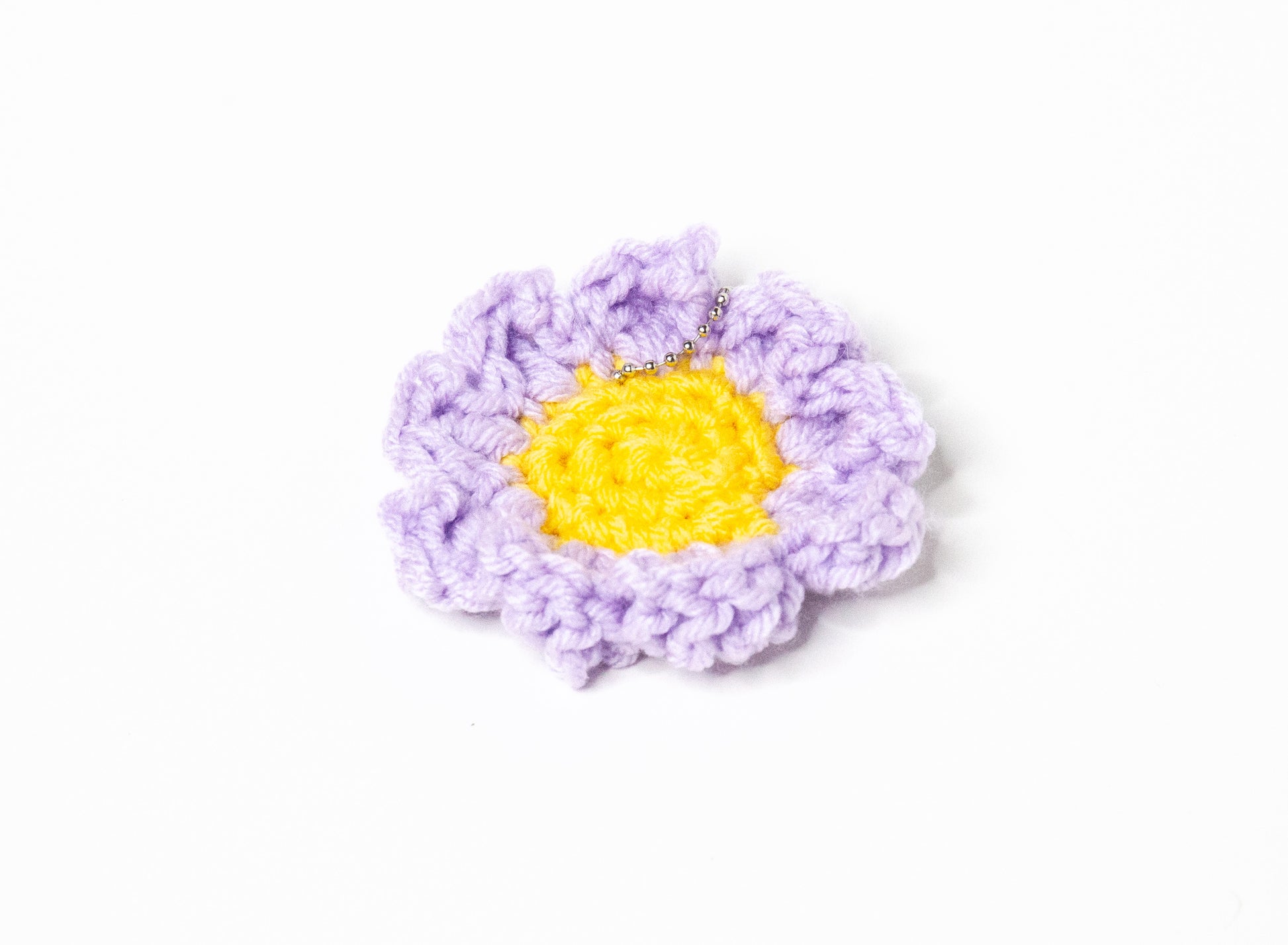 Daisy keychains that come in many colors. Crocheted and created by me.