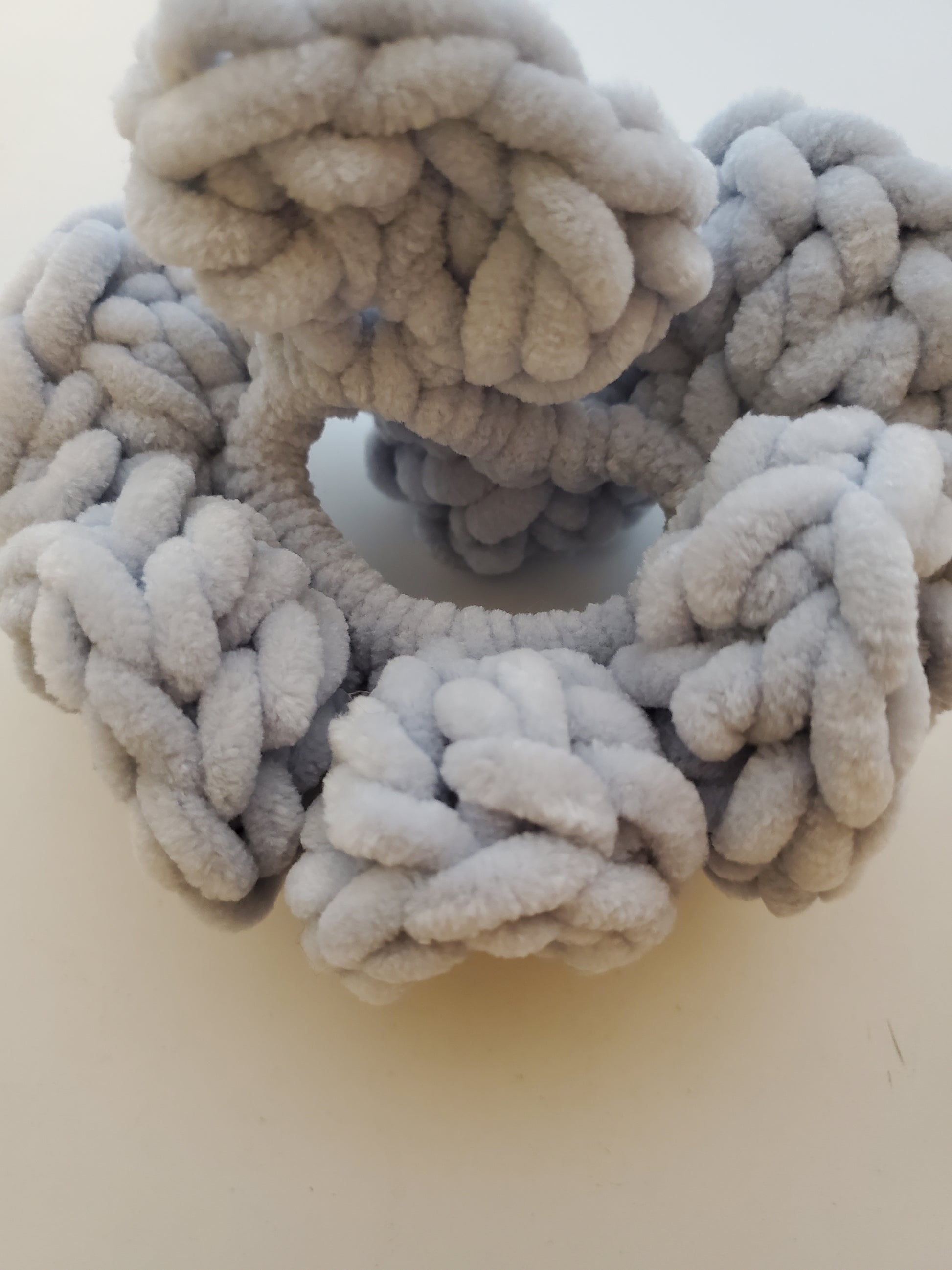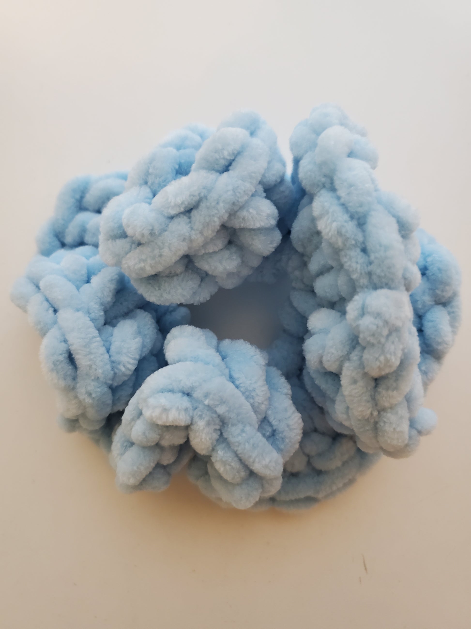 These are handmade, crocheted, and cute scrunchies. They are perfect to use as a hair tie and to style your hair with.